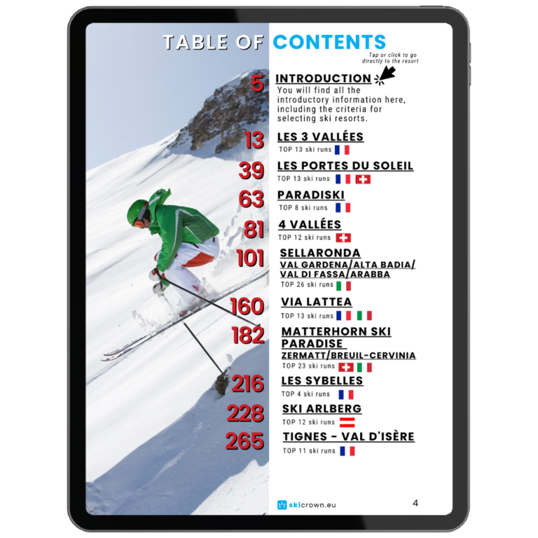 Click the button below to download a free chapter of the ski guide Skiing Europe: Top 100 Biggest Ski Resorts & 617 Best Ski Runs – The Ultimate Ski Guide >>